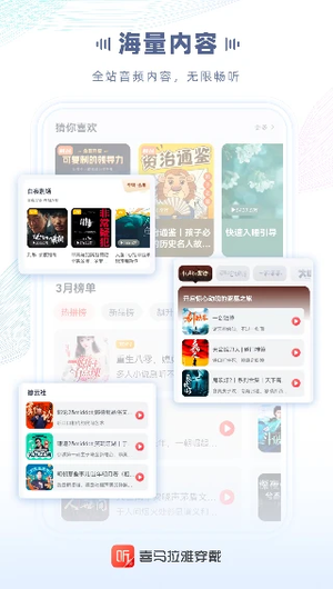 喜马拉雅穿戴APP相信大家不陌生是一款专门针对于智能手表打造的线上电台,这款软件为用户提供了海量的优质音频内容、个性化的设置与便捷的服务。用户可以通过这款软件轻松收听海量音乐和脱口秀节目等类型的有声书籍资源,不仅如此,软件还支持多种播放模式以及离线缓存功能,这样就能够很好的满足了用户的使用需求。