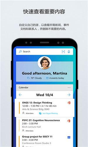 Launcher中文版是一款安卓手机桌面的软件 MicrosoftLauncher中文版是微软推出的一款桌面软件。使用这款桌面上的应用图标就可以将应用程序放置在手机上,并且可以设置快捷方式和天气等信息以便于管理日常操作或工作时节省手机时间。