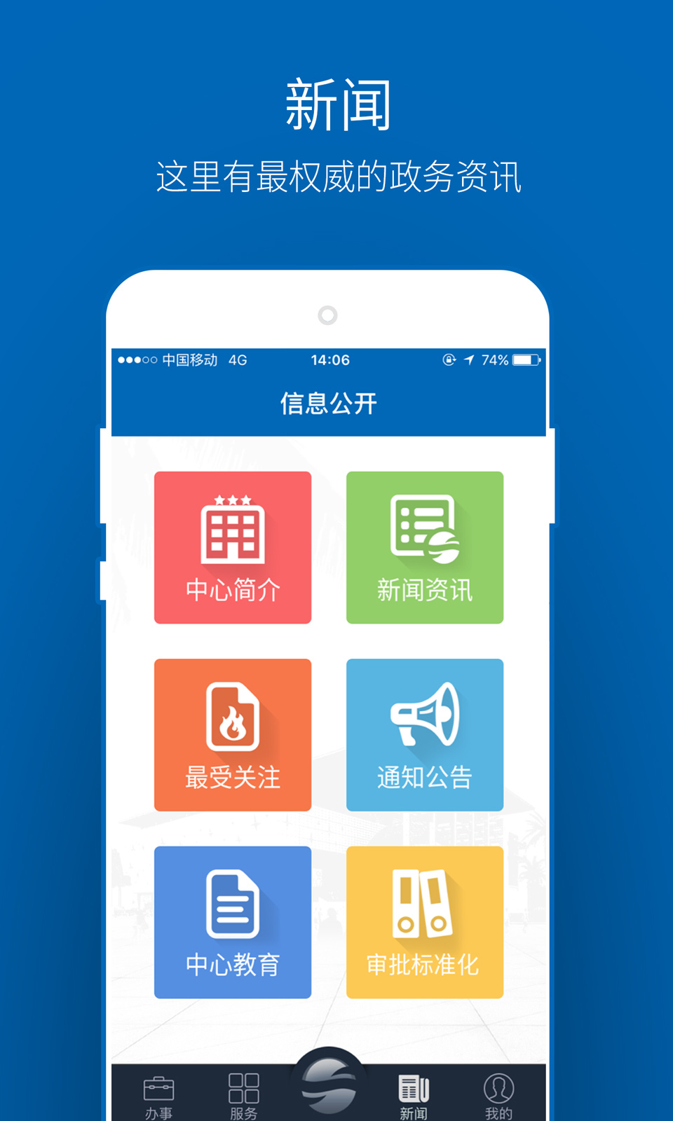 5.“掌上政务大厅”畅享指尖办事:汇集政务公开公告发布及公示数据,实现“指间掌控”,打造“掌中办事”。