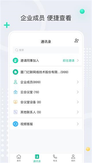 1、【亿联企业通信】亿联电话会议,让企业沟通变得更轻松;支持企业通讯录一键导入员工信息,实现统一管理无缝对接;