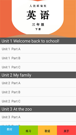 三年级英语人教版小学二下册学生使用版APP是一个专为小学生学习英语的手机软件,这款英语教学应用非常强大,可以帮助学生更好的掌握自己的学习情况和方法,让孩子在学的时候能够更加的轻松,需要的朋友们赶快来西西下载体验吧!