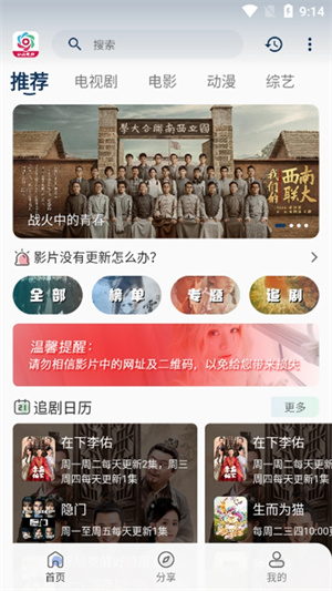 允许关注喜爱的电影和电视剧集,第一时间接收他们的最新消息以及时欣赏。