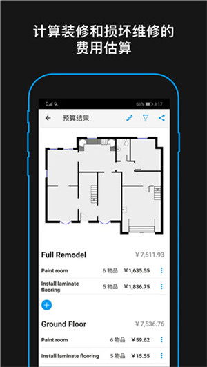 5、智能生成图形表格:利用先进的人工智能技术自动为用户计算出最佳的装修比例数据以辅助您完成预算目标.