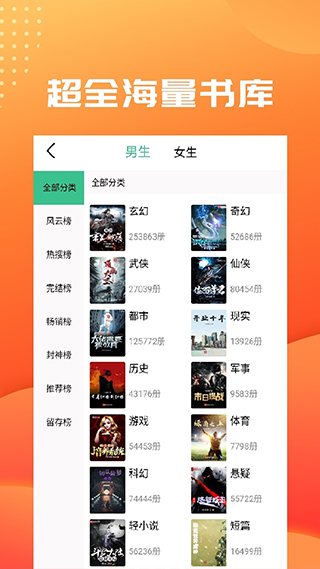 玄幻奇幻、武侠仙侠、都市言情,历史军事等各种小说题材涵盖,满足不同用户的阅读需求。