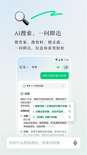 除了简单的文字描述之外元宝更是提供了丰富多样的信息库资源。用户可以在元宝上浏览其他人分享的优质内容或寻找志同道合的人脉圈子。无论是科技新闻、生活动态还是文化创意,都可以得到满足。元宝都提供了一站式的解决方案支持,无论您是想了解新知、探索未知还是拓展知识,都能在这个软件上找到满意的选择。