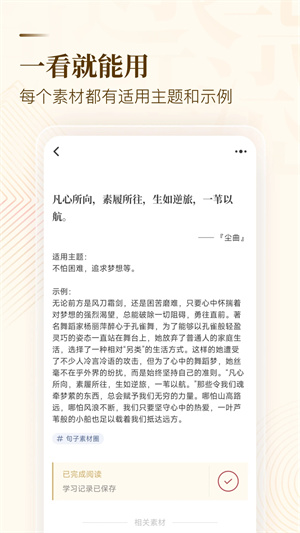 “小白写笔”是专属于学生使用的一款写笔、写句子与文摘抄APP,集海量名人名言、佳作、诗词和成语于一体,让您轻松找到自己的范例。
