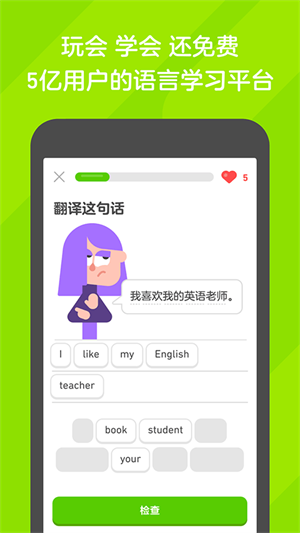 多邻家的学习系统采用科学系统的教学方法,以帮助用户更好地理解和掌握所学内容。你可以通过不断复习记忆或完成各种任务并获得奖励,从而在不断提高个人能力的同时,也能感受到进步带来的成就感!