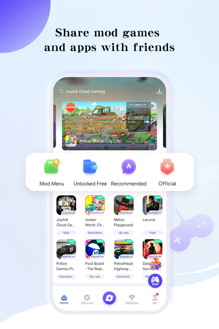 playMods(中文汉化)是由谷歌公司倾力开发的一款集游戏、交流社区、游戏下载及资讯于一体的应用程序。该应用程序涵盖各种游戏领域,包括动作射击类、角色扮演类、休闲益智类、冒险解谜类等等。