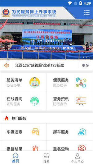 江西公安app是一款江西省居民服务平台,该平台上提供了大量的便民服务的业务办理功能。用户在使用过程中遇到任何问题可以随时咨询客服人员进行处理和解决。同时还能在线预约挂号、出入境登记等操作!赶快来下载吧。