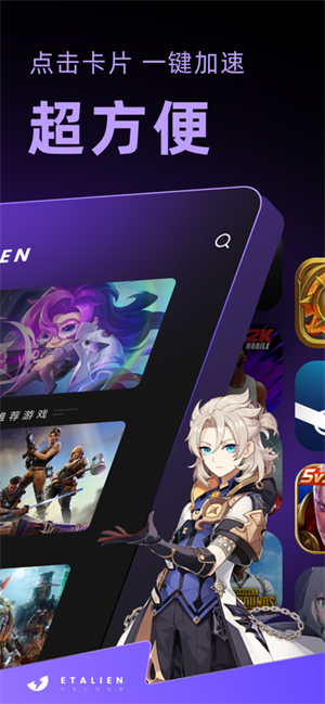 外星人的加速器是一款专业、实用的手游加速器。外语加速器,专为海外玩家打造,覆盖国外各大热门游戏服务器,提供稳定高速的游戏体验,让你轻松享受全球优质的手游服务。外文加速器拥有海量国际专线节点资源,采用智能路由匹配模式,根据不同网络情况自动选择最优线路,保证游戏流畅运行。外星人加速器还支持全球手游加速,一键切换海外手游服务器;实时监控游戏进程和设备状态,随时随地掌控游戏动态。