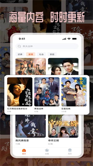 【免费】免费观看高清正版热门剧集,都市爱情爽文言情穿越; 3、甜宠虐恋古装重生逆袭等等全都有; 4、全新设计界面交互更方便,竖屏模式自由切换,带来不一样的观影新体验。【免费阅读】全场免费观看热门电视剧电影综艺动漫小说漫画随便读。【分类齐全】特色标签满足不同人群的需求,让你可以轻松找到想看的视频。