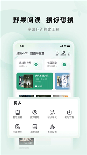 野果阅读换源小说app2024最新版本手机软件是一款专为喜欢小说的用户打造的免费看书神器,该应用提供了海量的小说资源和多样化的功能设置。无论你是想轻松追热门小说,还是追求个性化的阅读体验,这款app都能满足你的需求。这款应用不仅拥有丰富的内容库、便捷的数据统计与智能推荐系统,还支持多种操作模式进行优化调整,使阅读过程更加舒适高效。