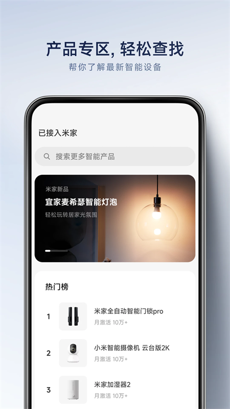 登录米家帐号就可以同步米家账户信息,包括余额查询、地址定位及修改密码;更有“我的房间”、“我的保洁”模块帮您记录家庭生活,打造一个美好的生活空间。