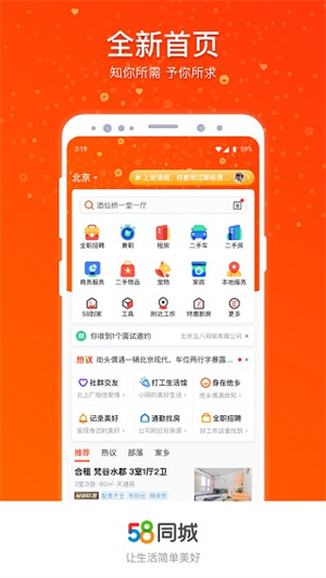 1、在本站下载安装58同城招聘版app,进入首页如下图所示