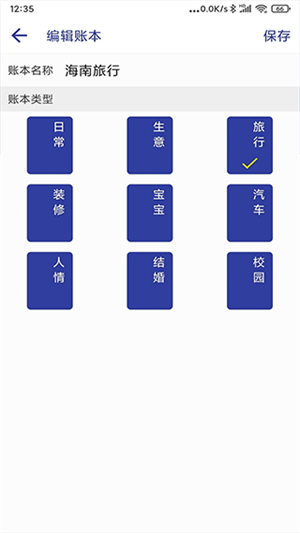 3、多账本切换:不同的账户对应有不同的标签分类别块供您选择,.