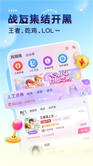 2、极速匹配模式:一键发现心仪的游戏大神,快速找到TA一起游戏。