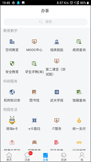 同时提供多种便捷的功能如查课表、报修、请假申请、图书馆座位预约登记、网上选书、教务处手机号码修改或密码解锁等实用操作。