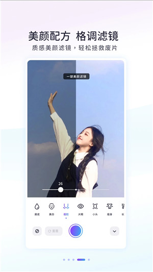 5、「美肤滤镜」精选全球顶尖皮肤滤镜,从少女到高级。从韩系,再到港风,从日韩,让你不再受审,也能拥有无暇肌肤。功能介绍