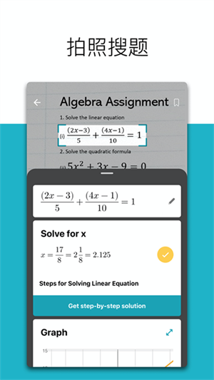 使用它可以轻松理解函数、指数和三角函数的计算。它提供了一系列实用的功能,包括代数表达式检查、图形绘图和函数曲线分析(例如平方根)等等,让您可以更深入地理解每个步骤的使用方法。这对于那些希望提高数学成绩的人来说非常有帮助,因为它是最好的数学练习工具。