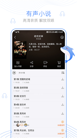 15、另外,在阅读界面中,还可以切换到听书模式,解放双眼,让大家能够随时随地的享受小说故事。