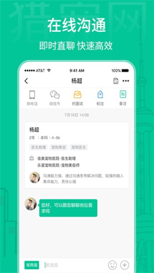 4、【在线沟通省时又省力】直接联系招聘方进行电话交流互动。