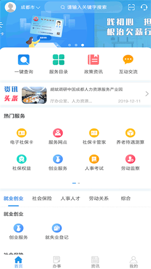 1、下载安装并打开四川人社app,进入首页我们可以看到很多优质的生活类别分类,