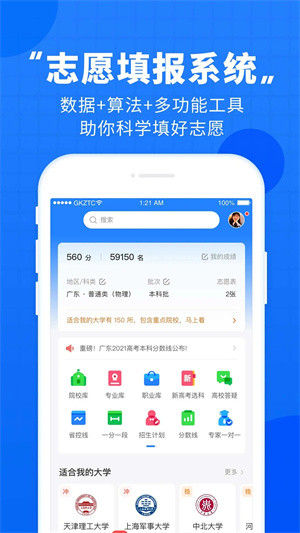 同时高考直通车app还能为你提供全面而准确的院校信息查询功能,包括分数线、录取分数线、招生计划、专业简介等详细的数据内容以及历年的分数线走势分析图表让考生能够对自己心仪的学校做出更加深入的了解,从而实现科学合理的志愿填报策略。除此之外高考直通车app还可以根据你的考试成绩生成精准的成绩分析报告给考生查看哦,有需要的用户不妨来下载试试吧!