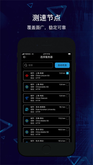 轻松获取不同城市的测速结果并选择最佳的网络方案(比如Wi-Fi)。