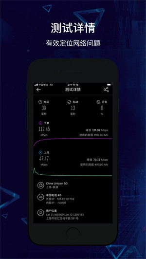 泰尔网测旧版本是款专为喜欢玩手机的用户们打造的手机测速工具,开启之后用户们就能在线进行网络测试。通过点击和分享还能快速了解到自己的手机使用情况以及相关的信息等内容哦