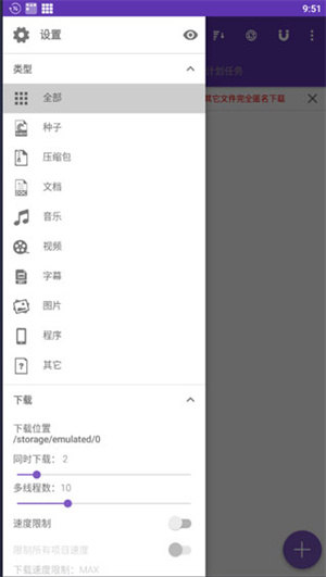 所有下载都可以按名称,大小,日期,类型,大小...筛选下载任务;