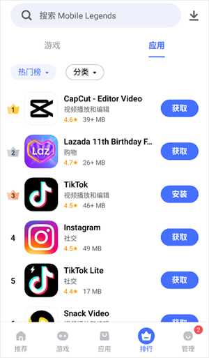 4、人气排行:根据下载排行榜单每日更新。带您发现近期热门火爆的应用。