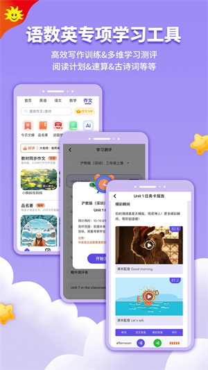 同步学APP是一款专为中小学生的英语学习产品,包含了语数英三大核心内容,通过配音和动画的方式让孩子们爱上英语学习。同时还支持单词跟读练习与测验巩固所学的英语知识。欢迎用户下载使用。
