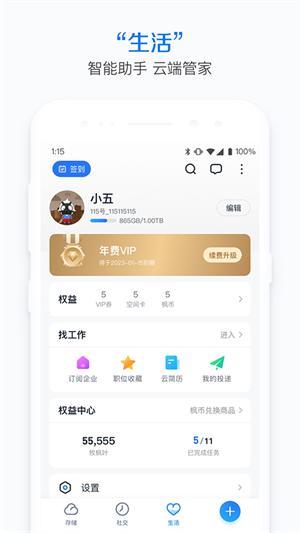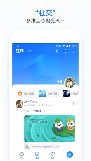 115是国内领先的智能存储工具。通过它,我们可以轻松地将手机上的图片、音乐视频等多媒体内容上传至云端,实现一键分享到朋友圈、QQ、微信等各大社交平台。