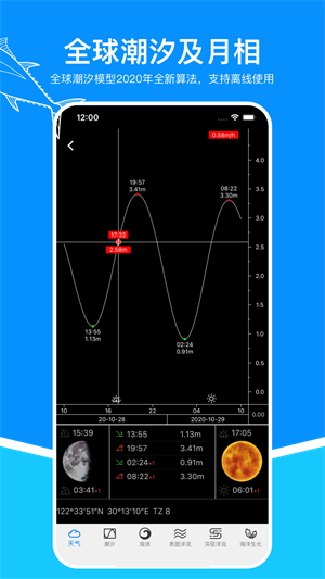 该软件提供了全球各个国家的潮况变化详情内容,帮助用户全面了解当地的风/气状况。这不仅能告诉我们所在地区正在发生的任何突发事件,还能提醒你做好应对措施和准备,确保每一次出行都能顺利应对。