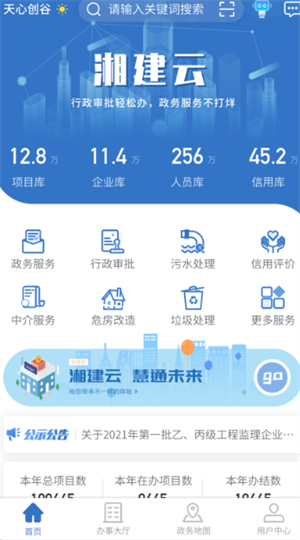 湘建云app官方版是专门为湖南省住房和城乡建设厅打造的手机政务服务软件,用户可以使用本软件进行在线办事体验,包含政策咨询以及***公告等内容。还可以查询个人账户情况、缴纳社保费用等等信息操作非常方便!