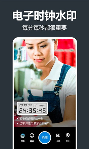 打卡相机app是一款非常好用的手机拍照软件,能够使用水印、时间记录等功能进行工作考勤的签到。各种信息在线一键添加编辑操作简单便捷好用。需要的用户赶紧看看吧!