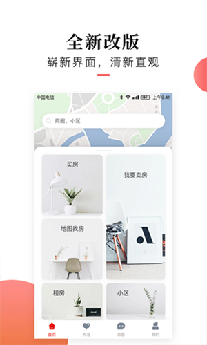 2、【楼盘介绍】:为你解读房地产的详细情况展示让你轻松选定意向区域楼层等多种内容查看更加方便快捷省心有保障更安心。2、【地图找房】:根据地理位置即可获取附近房源的位置详情数据一目了然查找房子更为便捷简单实用3、【小区查询】:支持将小区的所有房价变化图文形式呈现给你选择性比较强且价格低廉好货超多4、【消息通知】:新的消息及时发送给每一位购房者们来第一时间知晓装修状态6、【个人中心】:在这里你可以自由编辑自己的收货地址及联系方式7、【免费咨询】:遇到任何问题还可以点击拨打客服电话的方式解决难题软件优势功能1、【首页模块】新增“租房”板块,涵盖了二手房买卖租赁全流程5分钟内成交后会自动帮你生成房源档案,在我的模块中可以看到自己收藏的房源数量、已发布的订单数、待看中的商品和服务评价等8、【发现模块】新增“社区”,以话题讨论为主,每天都会为您推送热门帖子,带你了解房产行业的更多新知识。