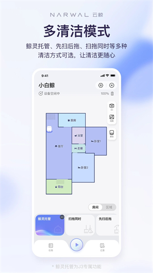 云鲸智能app是专门为手机用户打造的智能设备管理平台,云鲸智能app支持多设备连接使用,通过蓝牙进行远程控制,让大家可以随时随地在线上享受智能家居带来的便捷体验,还能对智能设备状态等信息一目了然;软件拥有丰富的功能提供给你来选择设置、参数修改等等服务都可以自由的选择。