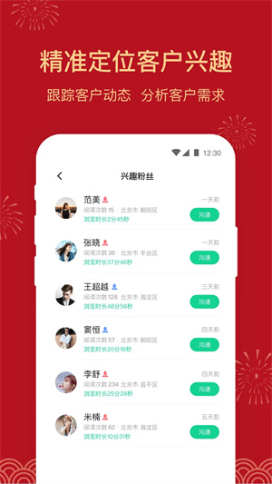 应用程序能详细记录用户的访问数、访客数以及浏览次数,包括访问时长和访问速度等关键指标,有助于及时掌握潜在客户。