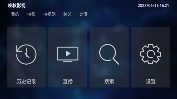 手机、平板、电视等多种操作系统的账号均可在同一设备上登录到晚冬电影App中查看历史记录及收藏作品的功能;