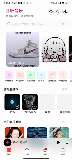 聆听音乐app是众所周知为喜欢听歌的用户们量身打造的一款音乐播放软件,该软件拥有海量的曲库资源、丰富的音质选择和优质的功能设计,让用户能够轻松享受音乐带来的震撼。除此之外它还有着海量的正版曲目与个性化的推荐服务等你来探索发现,满足了用户的不同使用需求,感兴趣的朋友欢迎来下载使用吧!