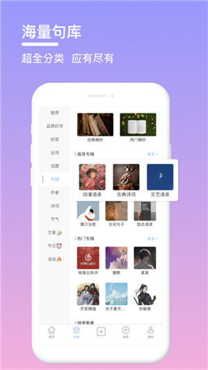 -内置大量精美的图片配有“优美文字”、“心情鸡汤”等个性模板供您挑选并快速添加成句子/自制专辑。