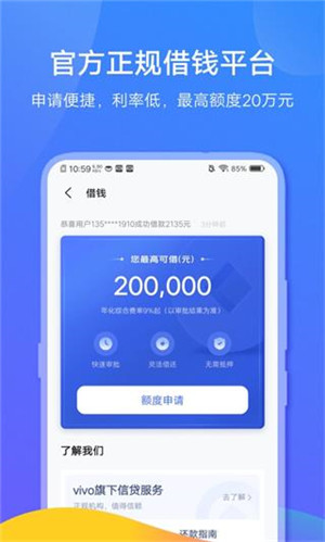 智能推荐适合您的额度方案:根据用户的信用状况及习惯制定合理的风险测评计划来提升借还效率;