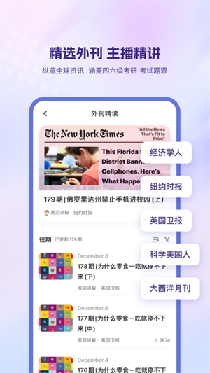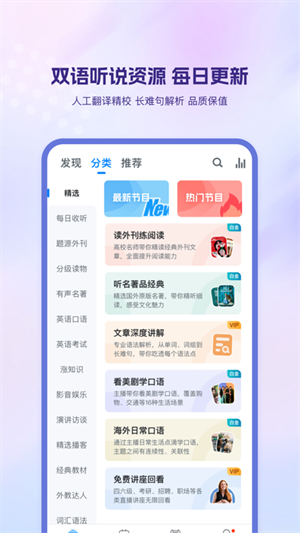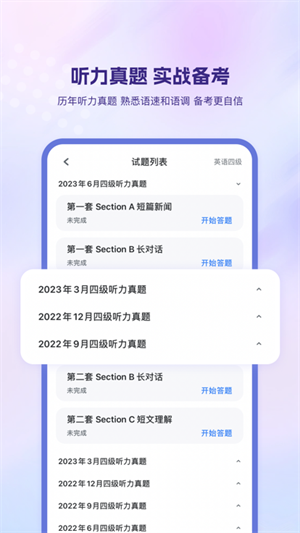 本应用中包含大量英语学习资料供用户随时随地进行在线学习与练习,
