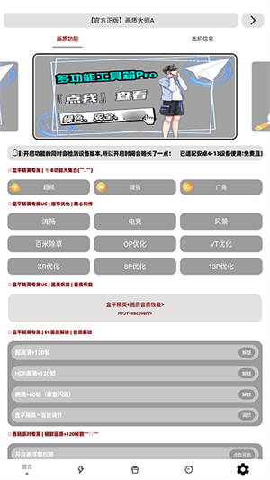 1、拥有超多实用性强的功能设计服务可一键开启提升画质的效果十分不错;2、自带超强的画质特效设定给你带来更多不一样的游戏玩法趣味十足;3、实时在线更新很多新的参数信息资源任你去获取查看详细数据分析很便捷好用;画质大师AI60FPS帧数调节器优势