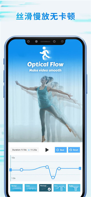 2、速度调节:通过拖拽的速度轴可快速调整视频速度