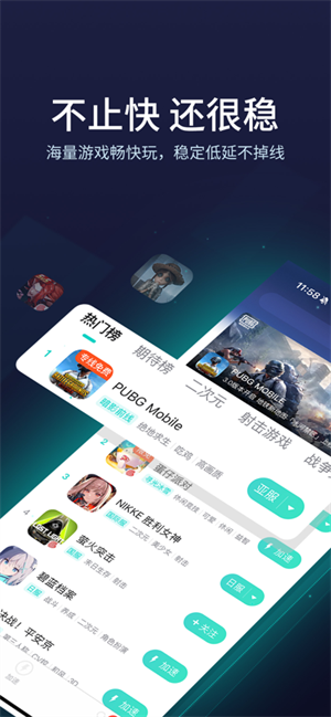 2、电竞级加速:采用国内领先的专业专线技术,实时监测游戏信号,让您畅享超高速的网络连接。