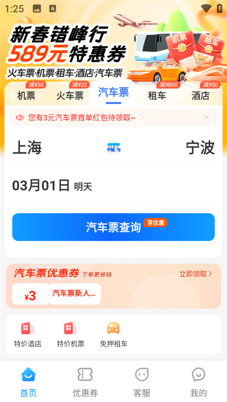 机票低至1折,优惠价机票火车票全覆盖。