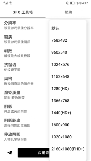 故来工具箱最新正版可以提供画质修改功能,软件拥有非常丰富的画质调节选项供你选择使用哦,你可以根据自己的手机配置进行优化。这里的设置也非常多样,你可以自由设定参数和分辨率等;还可以调整游戏的分辨率以及帧数等等!
