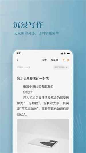 番豆作家助手App是一款专门为小说创作者设计的应用程序,旨在于帮助他们提高他们的创作效率,并且能享受到高质量的文章输出体验。